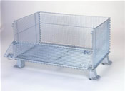 1、倉儲籠采用強力鋼絲多點點焊而成,底部以U形槽鋼焊接補強,強度高、裝載能力大,承重范圍可達到0.5T~2.0T;