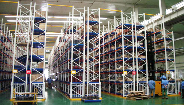 窄巷道貨架 窄巷道托盤式貨架又稱VNA貨架,專指常規(guī)橫梁式貨架系統(tǒng)選用的叉車為三向叉車時(shí)的系統(tǒng),其與常規(guī)托盤式貨架系統(tǒng)相比,區(qū)別在于窄巷道托盤式貨架系統(tǒng)的巷道寬度要比常規(guī)托盤式貨架系統(tǒng)小的多,一般